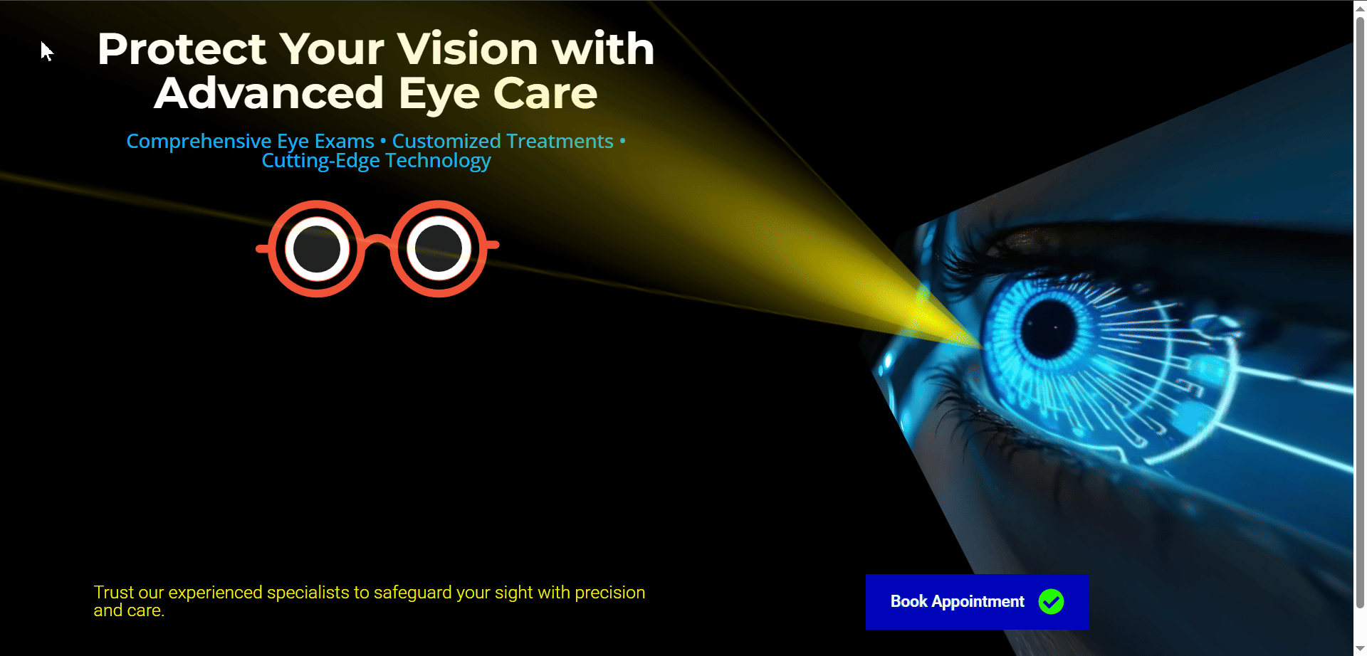 Most eye clinic websites look outdated and static. This hero section:
